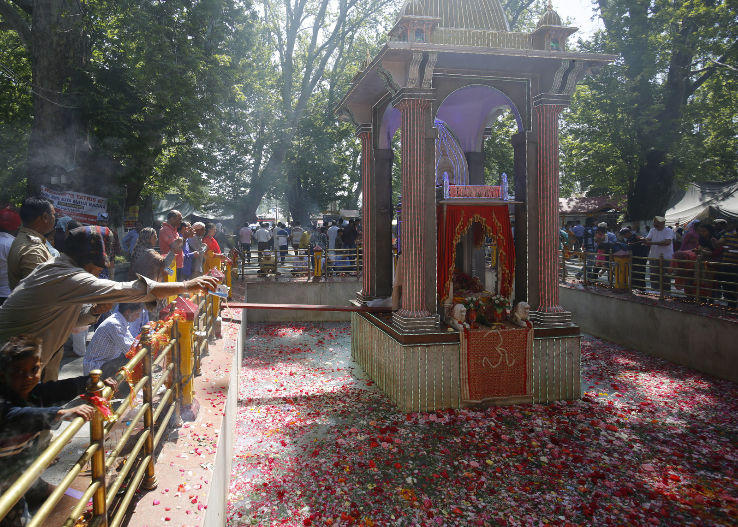 The spring of Kheer Bhawani is very substantial and has dependably been held in love by the Brahman populace of Srinagar. The fans of the Goddess Mata Kheer Bhawani quick and accumulate here on the eighth day of the full moon in the long stretch of May/June. The Annual Festival, on 26th May 2015, is an open occasion in Kashmir, J&K while, as per conviction, the Goddess changes the shade of the spring's waters, which are credited to ious signs of the Goddess Mata Kheer Bhawani.
